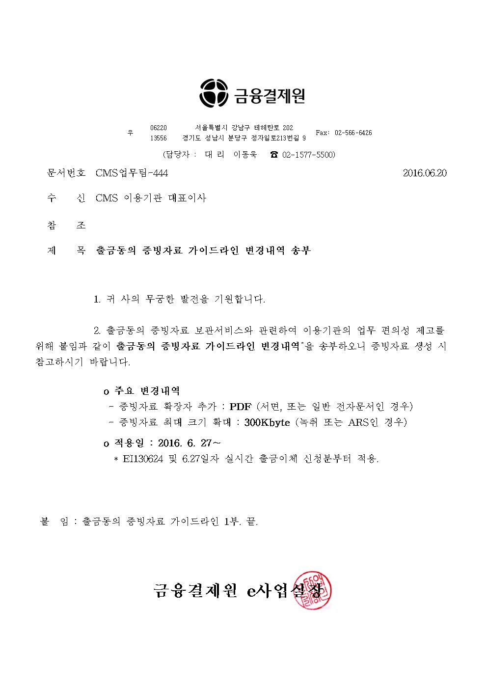 ○ [금융결제원] 출금동의 증빙자료 가이드라인 변경내역 송부