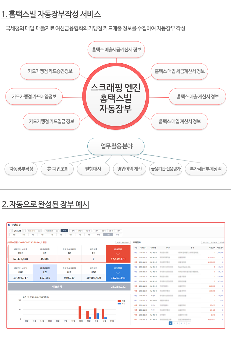 국세청의 매입,매출 자료 및 여신금융협회의 가맹점 카드매출 정보 수집하여 자동장부 작성